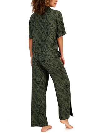 With a cropped shirt and side-slit pants, this pajama set from Alfani keeps you fashion-forward sleep style.