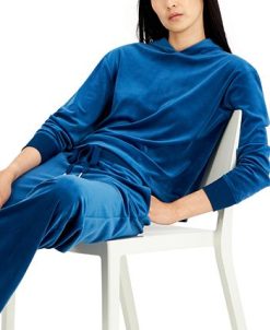 Alfani Women’s Long Sleeve Hooded Velour Pajama Set, Created For Macy’s