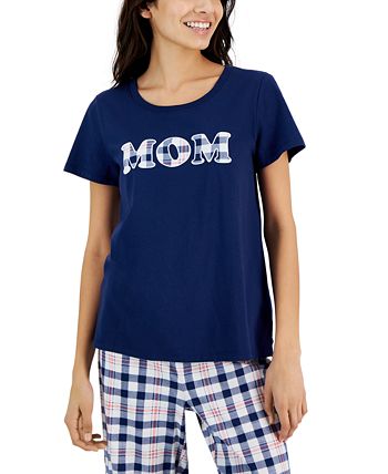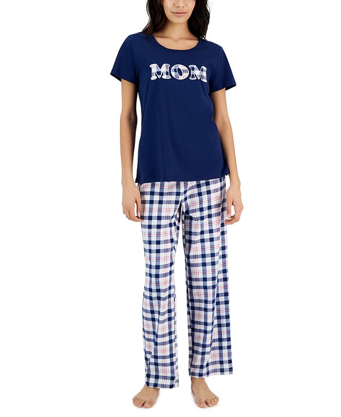- Top: Scoop neckline; plaid ‘MOM’ print at front; hits at hip