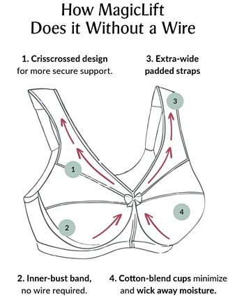 Your clothes will fit and look better with this minimizer. The sophisticated lacey look includes all of the MagicLift features, a wireless inner cushioned band for incredible bust support and great shape. The wide padded straps pamper your shoulders and cotton blend bottom cups wick away moisture for all day comfort.