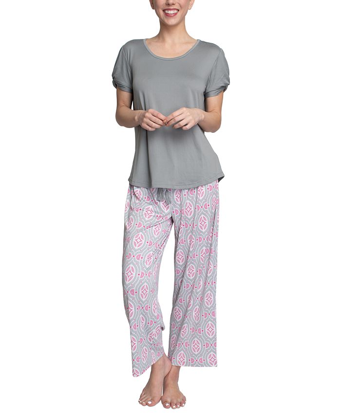 Made in Muk Luks’ super-soft cloud knit fabric, sleep in comfort and style with this twist-sleeve top and matching pajama pants.
