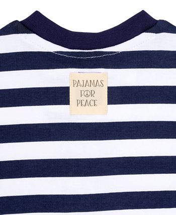 Reminiscent of a day at sea, our nautical stripe inspires hours of creative play and wonder. Sleep comfortably, knowing that you are making a difference by wearing Pajamas For Peace pajamas.