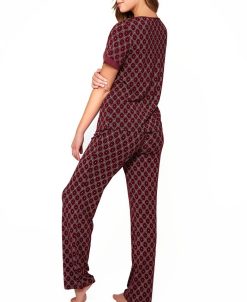 ICollection Women’s Kyley Pajama Heart Print Pant Set Trimmed In Red, 2 Piece