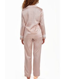 ICollection Brillow Plus Size Satin Striped Button Down Pajama Pant Set, 2 Piece