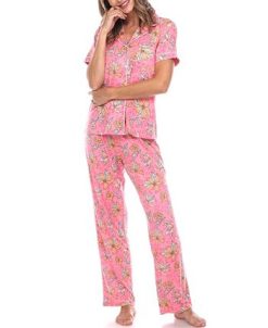 White Mark Omen’s Short Sleeve Pants Tropical Pajama Set, 2-Piece