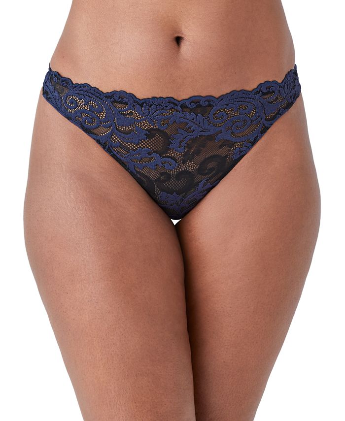 Romantic scroll lace glides over your curves to give you a beautiful, feminine look with this sleek thong from Wacoal. Style #842322